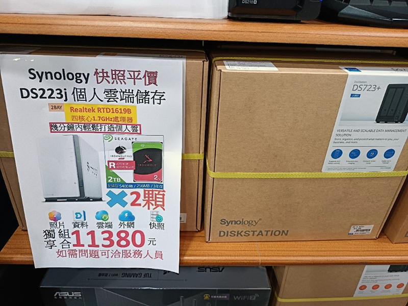 UPS(無停電電源装置)やNASも置いてありました。はたして、個人で買う人はいるのでしょうか…。Synologyも台湾メーカですね。数か月前に案件でNASを調べており、そのときに知りました。